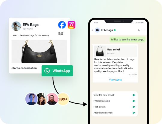 Capture attention with click-to-chat ads and drive users straight into WhatsApp conversations.