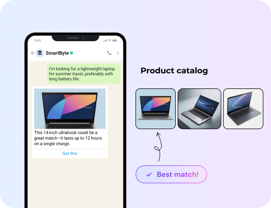 Bring new customers into WhatsApp through ads, your website, and offline channels to start the first conversation.