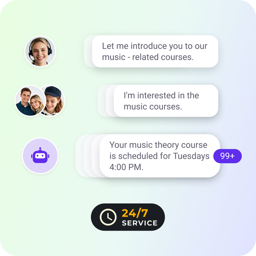 WhatsApp chatbot handles enquiries 24/7 and automatically book trial sessions