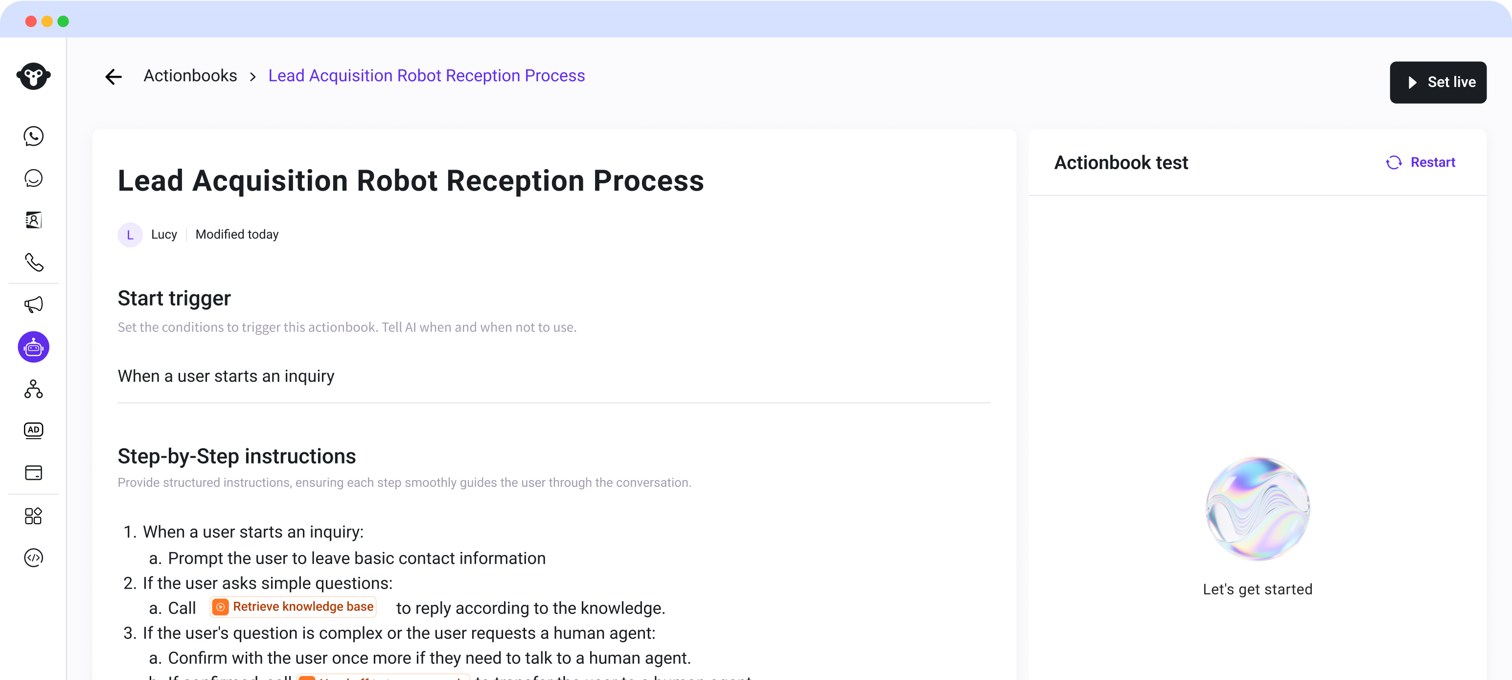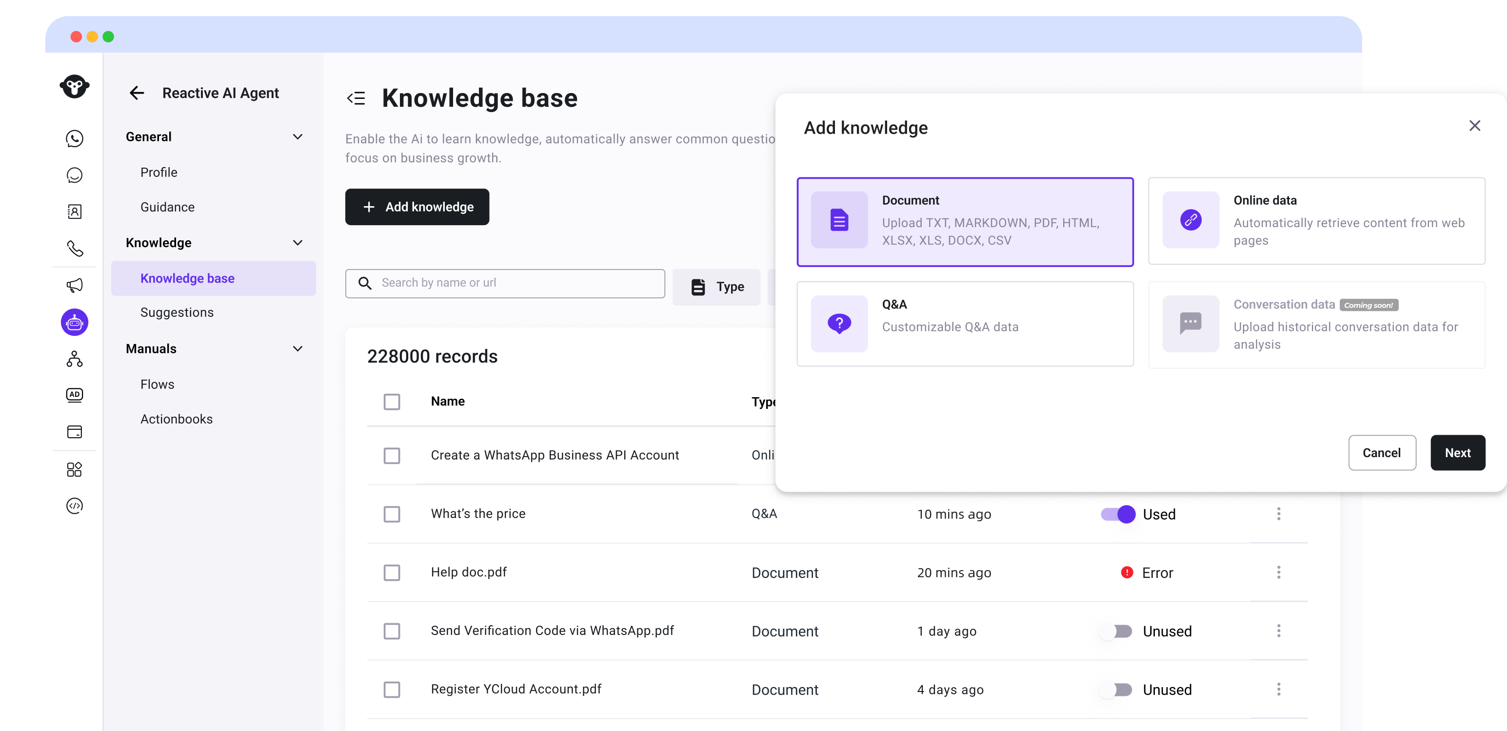 We provide two flexible ways to train your AI Agent to handle any business scenario, from FAQs to complex workflows—no coding needed.