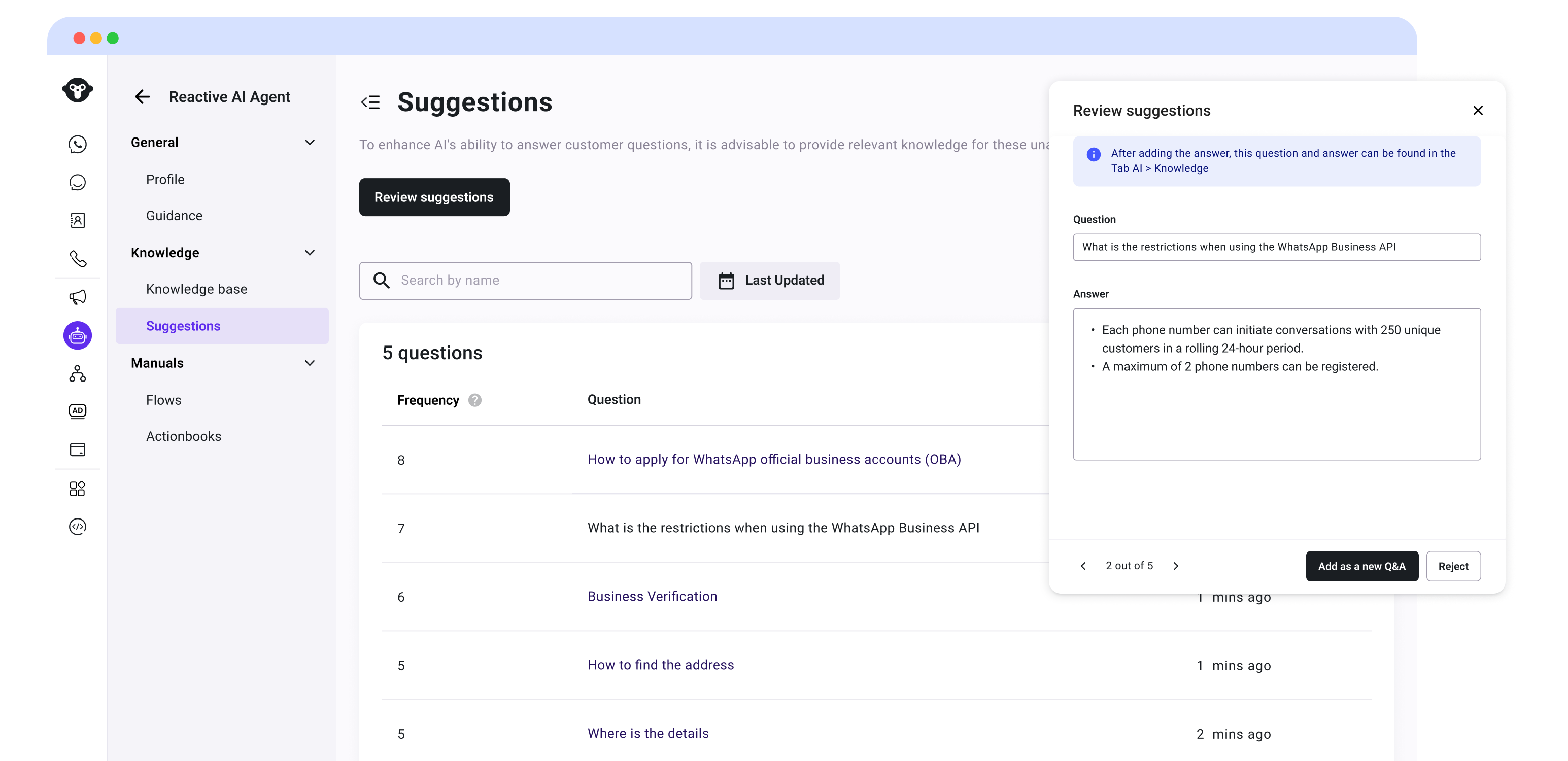 Your AI Agent identifies unanswered questions, flags gaps, and evolves with expert updates for improved accuracy and performance.